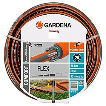 Manguera Jardin Gardena. Flex, Con Power Grip Para La Conexión Perfecta De La Manguera Al Conector Rápido, Resistente A La Presión E Indeformable Por Su Refuerzo De Carbono, Flexible, Sin Fostatos Ni Metales Pesados. Rollo Diam.15Mm. 50M.