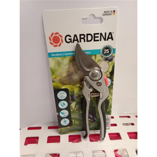 Las tijeras para podar rosales BP 50 Premium GARDENA son unas tijeras de alta calidad para los amantes de las herramientas de corte sólidas. Las empuñaduras de aluminio especialmente resistentes se adaptan a la mano bien y de forma ergonómica. La cuchilla superior es de acero inoxidable y con afilado de precisión, la cuchilla inferior está forjada y se puede volver a afilar. Gracias a las dos posiciones de agarre con los mangos de perfil, se puede realizar un corte potente y rápido. Las tijeras para podar rosales disponen de recoge-savia y corta-hilo. Con el cierre de seguridad con una sola mano, las tijeras para podar rosales se pueden bloquear fácilmente y guardar con seguridad. El periodo de garantía es de 25 años. Las cuchillas intercambiables de estas tijeras para podar rosales profesionales altamente robustas permiten un corte especialmente preciso de flores, ramitas y ramas. Las tijeras para podar rosales disponen de una tensión de las hojas que se puede ajustar y de una cabeza de corte inclinada. El diámetro máximo de corte de las ramas es de 22 mm.