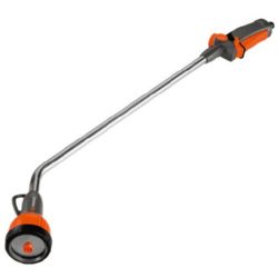 Este práctico y excelente fusil de riego de 90 cm de largo es ideal cuando se necesita un gran alcance de riego. Hay tres opciones de chorro: ducha fina, nebulizado y concentrado. Usted puede ajustar el tipo de chorro según las necesidades. Gracias a los componentes de plástico blando, el fusil de riego multichorro se adapta agradablemente a la mano con un buen agarre, permitiendo así un uso ergonómico. El caudal del agua es totalmente ajustable. Para regar durante más tiempo se puede bloquear el gatillo. Todo esto hace el riego y la limpieza aún más fáciles. El anillo de plástico blando sobre la cabeza la protege de posibles daños, por ejemplo, en caso de caer al suelo. El fusil de riego se puede colgar para un práctico almacenamiento. Usted puede retirar fácil y rápidamente su fusil de riego multifuncional Comfort GARDENA. Y disfrutar de un mayor confort al regar.
