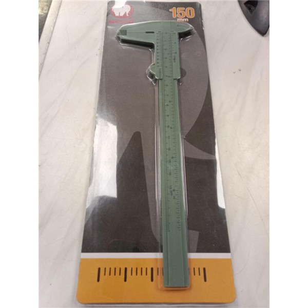 Precisión: 0,01 mm. Doble medición mm/pulgadas. Permite efectuar 4 mediciones: exteriores, interiores, profundidades y alturas. Puede realizar la medición con display apagado, al encenderlo nos indica la medida real de la posición en la que se encuentra el calibre. Estuche plástico protector. Incluye 1 pila de botón SR-44 1,5 v. + 1 pila de recambio. Norma DIN 862. 150 mm. Bocas 40 mm.