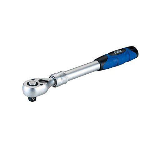 Cabeza cerrada. Evita que entre suciedad en el mecanismo interno. Botón expulsor de vasos Reversible Fabricada en Acero al Cromo-Vanadio Anilla con la que se fija la longitud de la carraca Mango de gran grosor para una mejor transmisión del par Mango perforado para permitir el ajuste seguro de la carraca a las diferentes longitudes Agujero para colgar Mango bimaterial