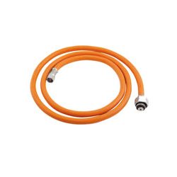 Conector de soldador y grifo de la botella GLP. Tipo A de plástico reforzado con armadura externa metálica. Tipo G de goma. Racord hembra diam. interior 5 mm. Presión trabajo 6 Bar. 150 cm. Goma
