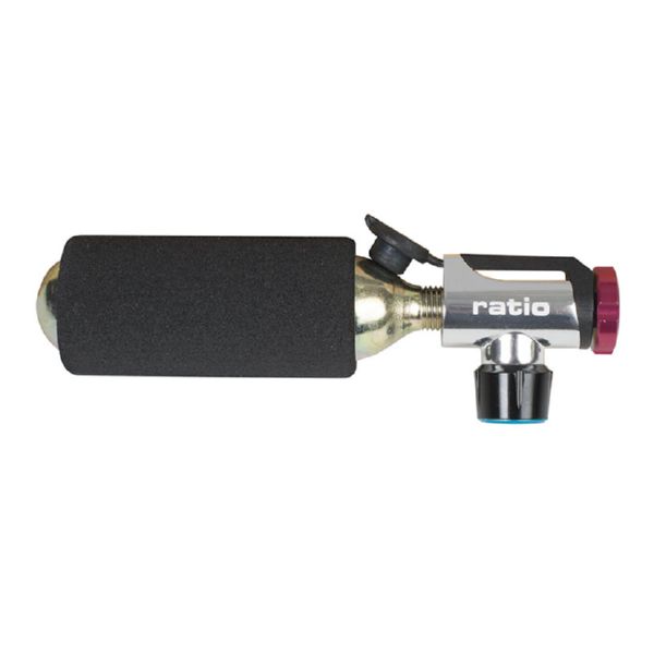Cuerpo aluminio con tapa antipolvo. Apto para valvulas Schrader y Presta. Microinflador de CO2 de fácil transporte. Control de flujo de aire girando el regulador. Para cartuchos de CO2 de 16 gr. con rosca. 1 cabeza de inflado regulable ..1 cartucho CO2 16 gr.