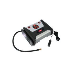 Para automóvil. Alimentación mediante conexión 12 V. Sistema luz led de emergencia. Incluye juego 3 accesorios. Presión máxima 100 PSI Manómetro digital Pistón Ø 21 mm. Longitud cable 275 cm. Longitud manguera 43 cm.