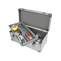 Estructura ligera PVC/Aluminio. Esquinas exteriores metálicas reforzadas. Esquinas exteriores metálicas reforzadas. Cierre metálicos. Interior acolchado. Empuñaduras antideslizantes. Potaherramientas Lightbox 6557-2. 44x21,6xh.20,2 cm. Bandeja interior extraíble. 2 separadores interiores ajustables. 2 cierres metálicos con llave.