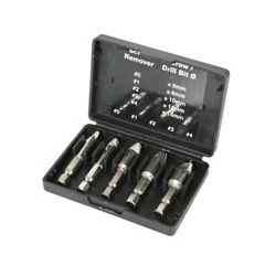 Juego 5 unidades. Acero HSS. Retira fácilmente tornillos rotos, dañados o incrustados. Estuche plástico. Ø tornillos 6 - 14 mm.