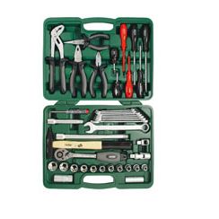 Profesional. Acero cromo-vanadio, acabado satinado. Empuñaduras ergonómicas antideslizantes. Llave carraca Locksystem. Vasos perfil Superlock que evita el redondeo de las tuercas hexagonales. 8 llaves combinadas 10 - 19 mm., 1 Martillo 300 gr., 1 Alicate pico loro, 1 Alicate universal, 1 Alicate boca semi-redonda, 1 Alicate corte diagonal, 5 Destornilladores,,,,, 2 Destornilladores aislados, 1 Tester 110-220 V., 1 Cardán universal 1/2, 2 Prolongadores 1/2 : 125 - 250 mm., 11 Vasos 1/2 : 8 - 24 mm., 2 Llaves Bujías 1/2 : 16 - 21 mm., 1 Llave carraca 1/2,,,,, 1 Adaptador 3/8 x 1/2.