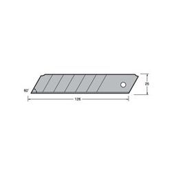 Trabajos muy duros. Longitud total 126 mm. Inclinación de la hoja 60º. Cuchilla con 7 segmentos de corte de 14 mm. Grosor 0,7 mm. 10 cuchillas. Ancho 25 mm.