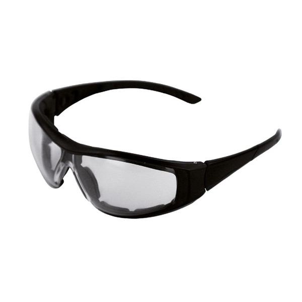 Ajuste del ángulo pantoscópico. Diseño envolvente de estilo deportivo.La lente filtra el 99,9% de la luz ultravioleta dañina. Protección UVA, UVB y UVC. Carcasa de espuma EVA. Brazos ajustables y lente intercambiable. Normas de seguridad EN 166 y EN 170. Montura negra, lente transparente.
