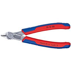 Alicates de precisión para los trabajos de corte más delicados en electrónica y mecánica de precisión Filos rectificados muy afilados sin bisel para el corte al mismo nivel Las puntas de precisa configuración cortan también alambres colindantes a partir de 0,2 mm de diámetro Articulación con remache de acero de gran calidad Filos de corte templados adicionalmente por inducción Movimiento extremadamente suave, evita la fatiga del operario Con muelle y limitación de apertura De acero inoxidable o de acero especial para herramientas