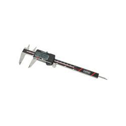 Precisión: 0,01 mm. Doble medición mm/pulgadas. Permite efectuar 4 mediciones: exteriores, interiores, profundidades y alturas. Puede realizar la medición con display apagado, al encenderlo nos indica la medida real de la posición en la que se encuentra el calibre. Estuche plástico protector. Incluye 1 pila de botón SR-44 1,5 v. + 1 pila de recambio. Norma DIN 862. 150 mm. Bocas 40 mm.