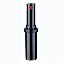 Aspersor de turbina emergente HUNTER serie PGJ, emergencia de 10, 15 y 30 cm. y aéreo, regulación del sector de 40 a 360 grados, vástago de plástico. Con 8 toberas estándar, Alcance 4,3 a 11,6 m. ajuste del arco en la parte superior, cubierta de goma instalada de fábrica., identificación de agua reciclada, válvula antidrenaje según modelo, Toma 172”H.