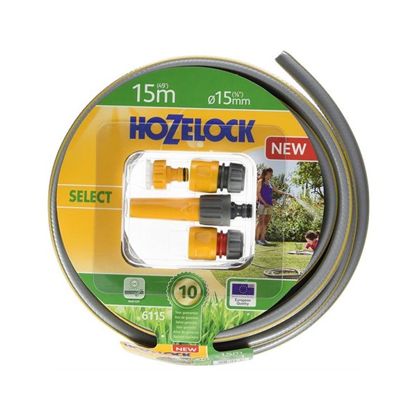 La Manguera kit select 6115p9000 15mm 15m de hozelock está fabricada con materiales de alta calidad que garantizan un rendimiento óptimo. Su diámetro interno de 15 mm permite un caudal adecuado para sistemas de riego domésticos y profesionales. La longitud de 15 metros es ideal para cubrir áreas amplias sin necesidad de múltiples conexiones. Además, incluye accesorios compatibles con otros productos HOZELOCK, facilitando la ampliación o personalización del sistema de riego.