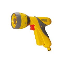 Bimaterial. Patrón de chorro, cono y caudal abundante, abanico y neblina. Dispositivo de accionamiento y bloqueo. -
