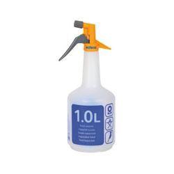 Pulverizador a gatillo pqueño para uso en interiores. Botella translúcid a y graduada. Boquilla ajustable de chorro fino a atomizador. 1 l.