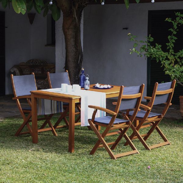 Madera de eucaplipto resistente a la intemperie. Silla plegable madera/textilene. 60x54xh.93 cm. 2 unid.