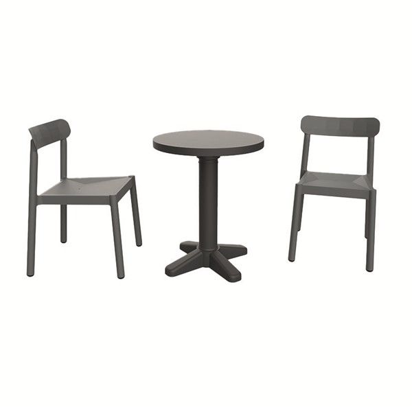 Resina gris antracita. Mesa ø 60 cm. 2 sillas sin brazos.