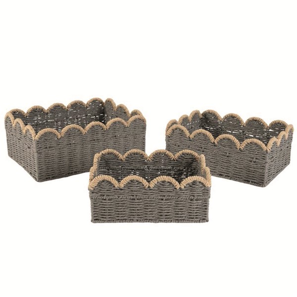 Bicolor gris/crema. Juego 3 cestas. 38x28x16 cm.