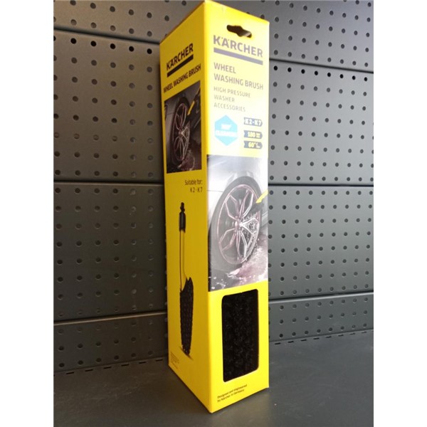 El cepillo para la limpieza de llantas garantiza, gracias a su forma especial y a las cerdas continuas, una limpieza extremadamente eficaz en 360º. Incluso los puntos de difícil acceso y los espacios intermedios más pequeños en llantas o entre radios se limpian a fondo y sin hacer concesiones con este cepillo. La distribución uniforme del agua en 360º disuelve y elimina la suciedad de todos los sitios por igual. Del resto se ocupan las cerdas de alta calidad. Al final obtenemos un resultado de limpieza uniforme y eficaz. La tuerca racor suministrada conjuntamente garantiza una buena fijación a la pistola de alta presión, y la empuñadura ergonómica asegura un manejo fácil y cómodo. En pocas palabras, la solución ideal para unas llantas y radios limpios y brillantes. El cepillo para la limpieza de llantas es adecuado para todas las limpiadoras de alta presión Consumer de Kärcher de las clases K2-K7.