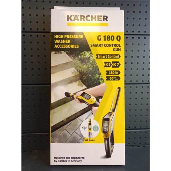 Control completo: la pistola de alta presión G 180 Q Smart Control permite controlar los niveles de presión y la dosificación del detergente de manera sencilla con las teclas +/–. Para que la suciedad especialmente resistente no suponga ningún problema, en la pistola se activa un modo Boost adicional que suministra aún más potencia. Además del control en la pistola, también se transfieren los ajustes de presión de manera sencilla y cómoda a través de la aplicación Home & Garden de Kärcher. En la pantalla LCD de la G 180 Q Smart Control tendrá siempre sus ajustes a la vista: haga el tiempo que haga. La pistola con la conexión Quick Connect es apta para todas las limpiadoras de alta presión de la gama Smart Control de Kärcher.