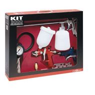 Profesional. Kit 5 piezas conexión rápida. Inflador 75 con manómetro 10 bar y pinza válvula neumáticos. Pistola standard Petrol 50, proyección de petróleo y detergentes. Enchufe rápido 8173 para manguera diam. 8 mm. Pistola Fura 2100 ST. Pistola sopladora 63 de fira de vidrio y boquilla de caucho. Llave 120. -