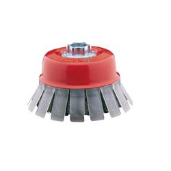 Acero trenzado Ø 0,5 mm. Guarda protectora. Casquillo roscado M14. Máx 8.500 rpm. Ø 100 mm.