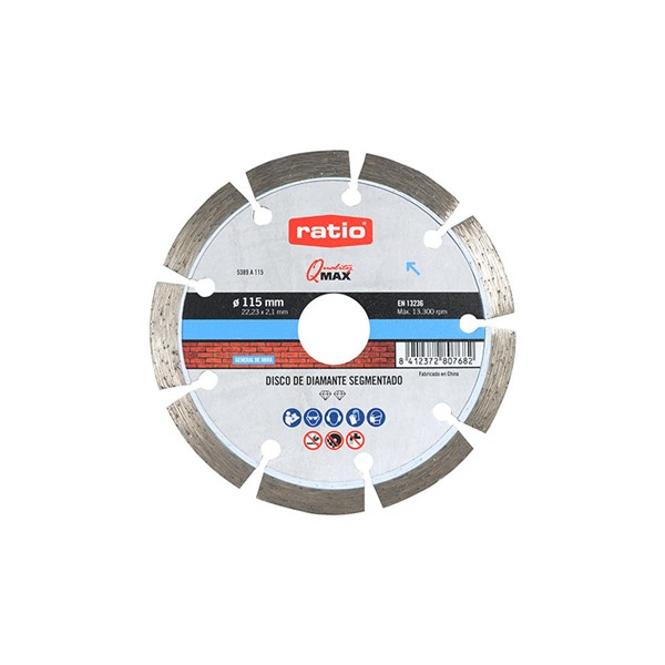Soldadura sinterizado. Perfil segmentado. Segmento 10 mm. Disco corte de diamante, para ?mbito de aplicaci?n general de obra universal. CONFORME A: EN 13236. ? 115x2,1 mm.