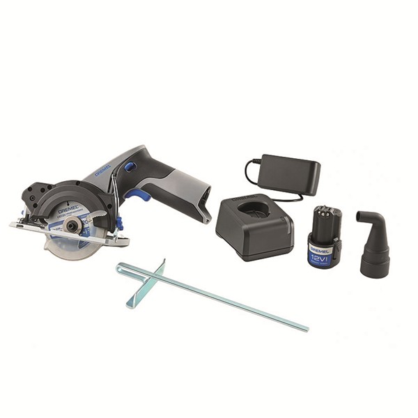 Serrado sencillo y rápido con motor de 12 V sin escobillas; para más potencia, eficacia, menos mantenimiento y una mayor duración de la batería. Incluye Sierra circular compacta Dremel 12V. Adaptador para aspiradora. Batería 12V. Cargador 12V. Hoja de sierra circular multimaterial. Tope paralelo. 1 batería 12V. 2.0 Ah. Guía laser. Cargador rápido.