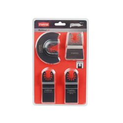 Kit 4 sierras acero/acero inox. Anclaje universal. 1. Sierra circular Ø 88 mm. 2. Sierra recta 34x40 mm. (dentado oblicuo). 3. Sierra recta 34x40 mm. (dentado recto). 4. Rascador acodado 50x75 mm.