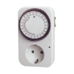 Programador mecánico diario.Con lengüetas extraibles. Incluye interruptor ON/OFF. Intervalos programables de 15 minutos. Presentación en blister.