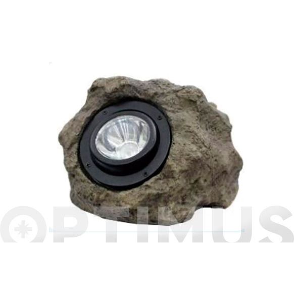 ROCA SOLAR DECORATIVA. Material: pc. Inclinación de la luz ajustable. 30 Lumens, color blanco cálido 3000K. Panel solar policristalino. Protección IP44