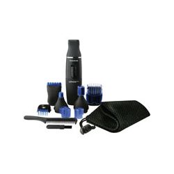 Perfilador mutifunción. 5 cabezales inercambiables para nariz, orejas, patillas, nuca y barba. Wet Dry para una fácil limpieza. Incluye peines guía y práctica bolsa de almacenaje. Pilas 1.5 V no inluidas. -