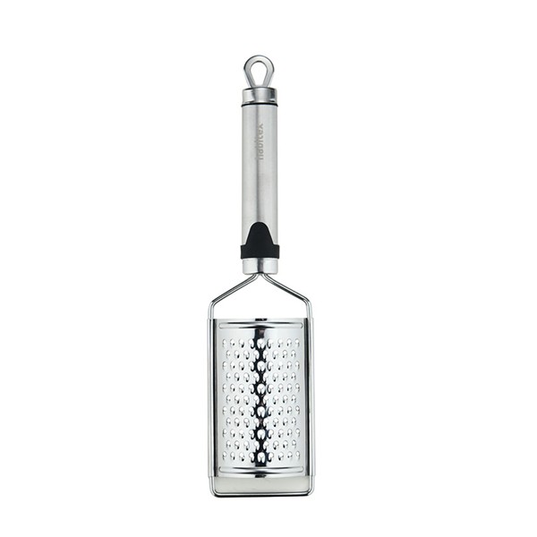 Acero inox de alta resistencia. Mango ovalado con colgador. Apto para lavavajillas. Rallador. 24,2 cm.