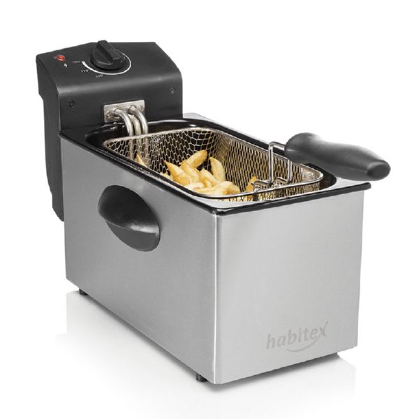 Cubeta esmaltada 3 litros. Temperatura regulable 190ºC. Fácil de desmontar para su limpieza. Mango plegable y extraíble. Apto para lavavajillas. Zona fría. Compartimento para cable. 2.000 W. Medidas: 54x17,5xh.25,5 cm.