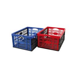 Plegable. Plástico base negra + azul o rojo. Capacidad 32 litros. 48 x 35 x 23,5 cm.