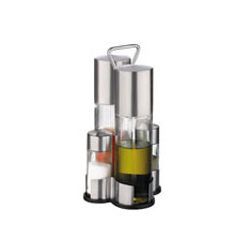 Spray dosificador. Acero inoxidable. Cristal templado. Soporte metálico. Capacidad 150 cl. 4 piezas