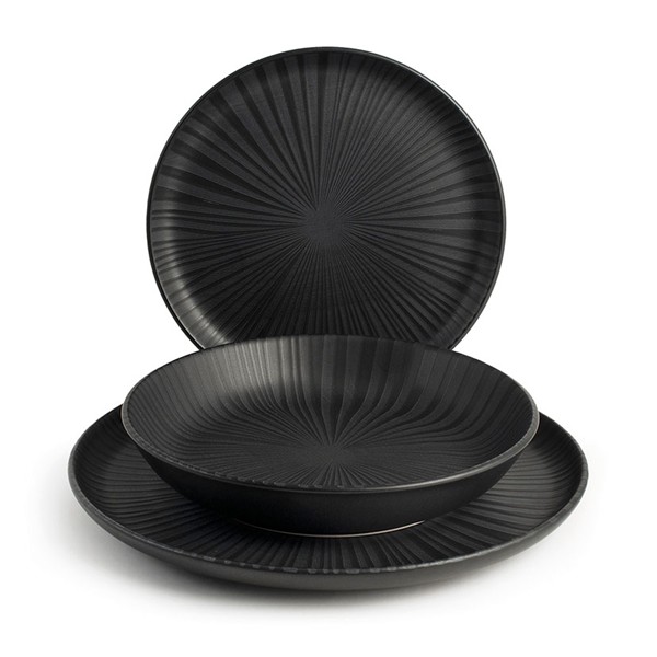 Porcelana negra. Plato llano ? 26 cm. Plato hondo ? 20,5 cm. Plato postre ? 20 cm.
