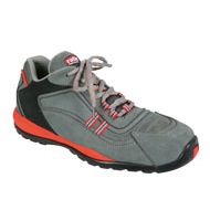 Piel nobuk gris/rojo, suela en caucho + EVA, bicolor. Forro en rejilla doble que favorece la transpiración. Puntera no metálica en policarbonato compuesto y plantilla antiperforación no metálica. EN 20345:2004 S3. Uso interior/exterior: talleres, mantenimiento, almacenes etc. nº 43