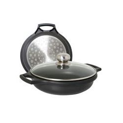 Serie especial inducción. Cuerpo fundición de aluminio indeformable. Tapaderas de cristal. Pomo inoxidable. Para cualquier tipo de cocina. Cacerola Ø 24 cm.