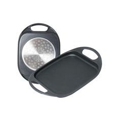 Serie especial inducción. Cuerpo fundición de aluminio indeformable. Tapaderas de cristal. Pomo inoxidable. Para cualquier tipo de cocina. Asador plano Ø 35 cm.