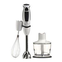 15 velocidades + Turbo. Varilla acero inox desmontable. Accesorio picador 500 ml. y levanta-claras metálico. Vaso medidor con tapa. 600 W.