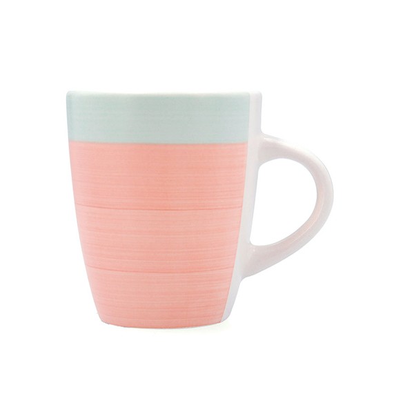 Cerámica. Apta para lavavajillas y microondas. Mug 33 cl. Coral/verde.