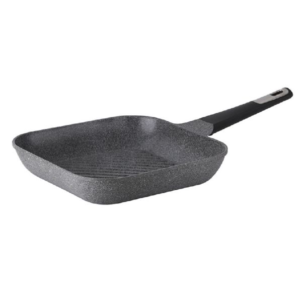 Interior y exterior con recubrimiento antiadherente cerámico Xtrema, efecto mármol, libre PFOA. Apto lavavajillas. ..Sartenes con mangos ergonómicos e inserciones de acero inoxidable. Cacerolas con tapa de cristal templado con bordes de silicona y ve Grill 28x28 cm.
