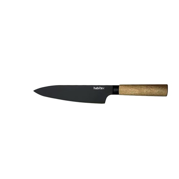Hoja acero inoxidable con alto contenido de carbono acabado coating. Afilado de precisión. Mango madera de acacia. Santoku 18 cm. Hoja 2,5 mm.