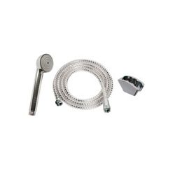 Conjunto teléfono ducha, flexo PVC 1,50 m. Codo cromado y tuerca cónica. Blanco