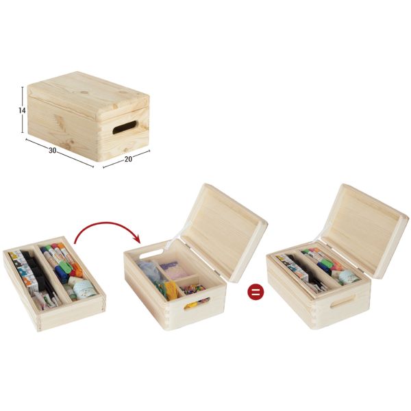 Caja de pino con organizador y tapa embalada 30x20x14