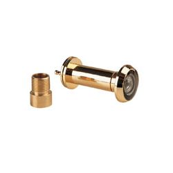 Cuerpo latón con baño de oro inalterable. 4 lentes cristal óptico. Arandela interior con tapa decorativa diam 22 mm. Super angular 200º. Puertas espesor 25-60 mm. Cabezal diam 25 mm. Latón pulido