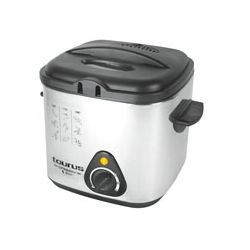 Resistencia oculta. Cubeta con recubrimiento antiadherente. Capacidad 1 litro. Regulación de temperatura y piloto luminoso de calentamiento de aceite. 1.000 W.