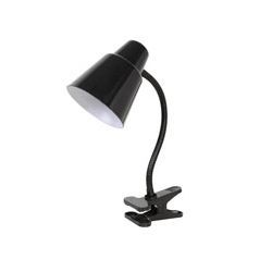 Lámpara con pinza para acoplar en escritorio. Metal y plástico. Rosca E27. Lámpara max. 40 W ( no incluida). Altura 38,6 cm, Ø tulipa 12 cm. Negro