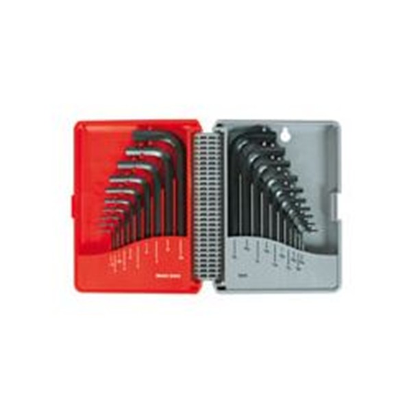 20 piezas métrico/pulgadas. Acero cromo-vanadio pavonado. Estuche plástico ABS con giro 360 º. 10 llaves métricas: 1,5-2-2,5-3-4-5-6-7-8-10 mm. 10 llaves pulgadas: 1/16-5/64-3/32-1/8-5/32-3/16- 7/32-1/4- 5/16-3/8